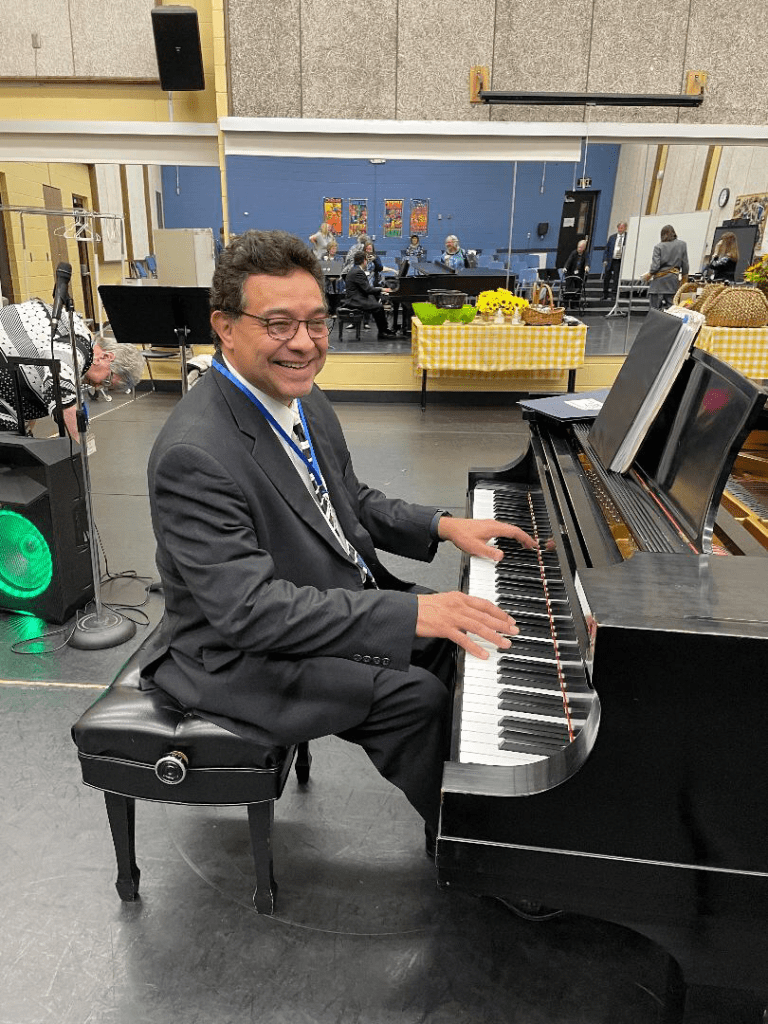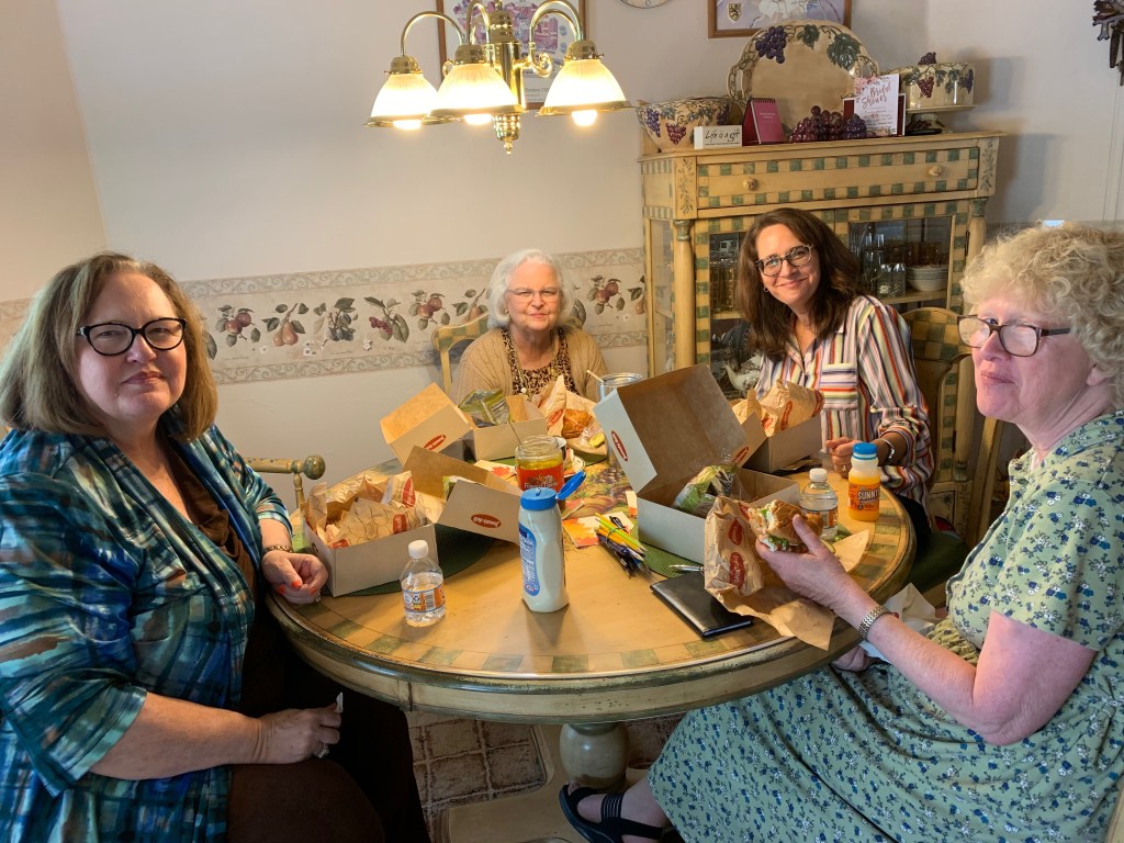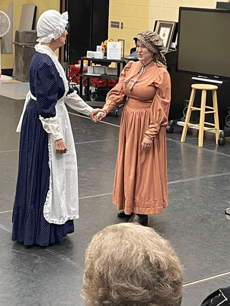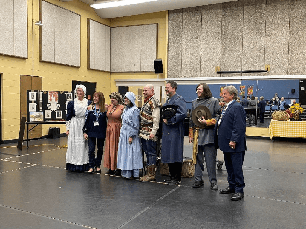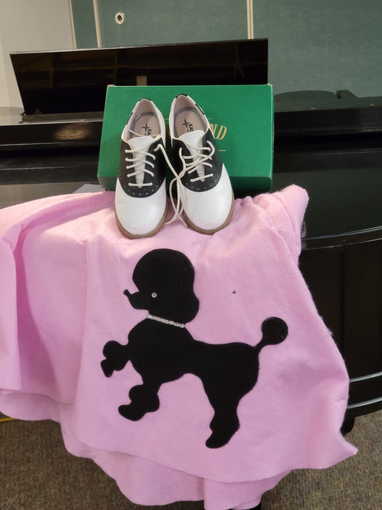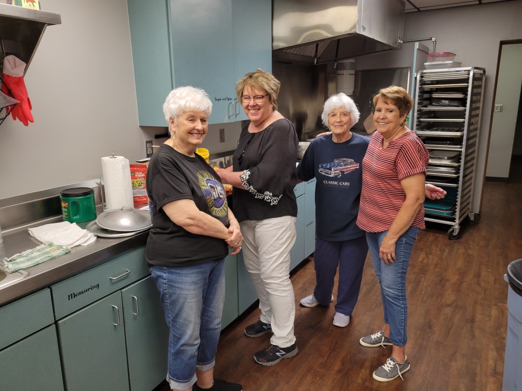 April 2008 State Convention. Leon Whitesell MOTY Chair presented the 2007 OFMC Musician of the Year, Nancy R. Cox, Altus club, seated in center wearing a corsage. She brought 10 Altus MacDowell Club of Allied Arts Club members, and directed them in singing for 15 minutes, more or less. Catherine Coke is on the back row, second from left, moving left to right.